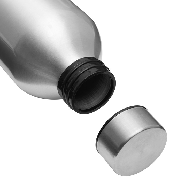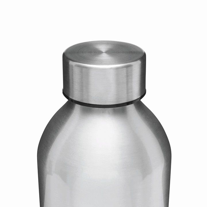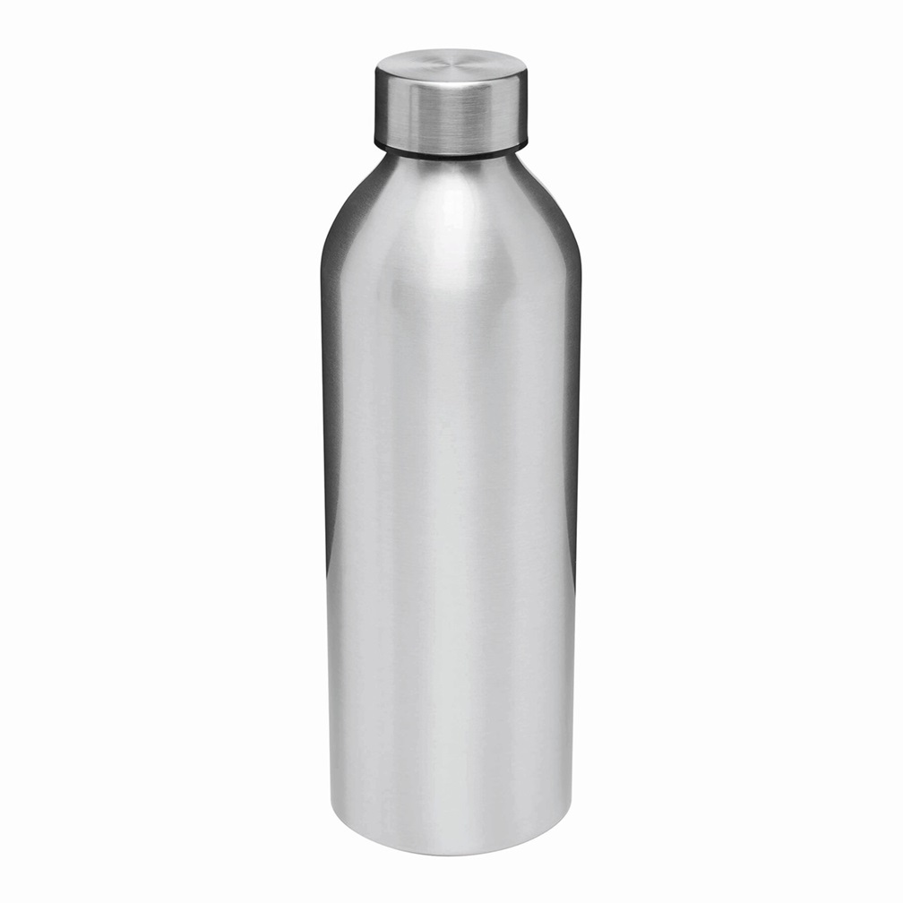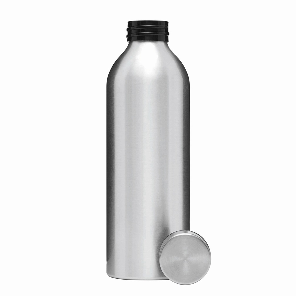 Aluminiowa butelka do picia JUMBO TRANSIT: jednościenna, zakrętka plastikowa z silikonową uszczelką i powłoką ze stali nierdzewnej, pojemność: ok. 750 ml. Rozmiar: Ø7,2 x 22,5 cm. Materiał: Aluminium / Stal nierdzewna / PP / Silikon.