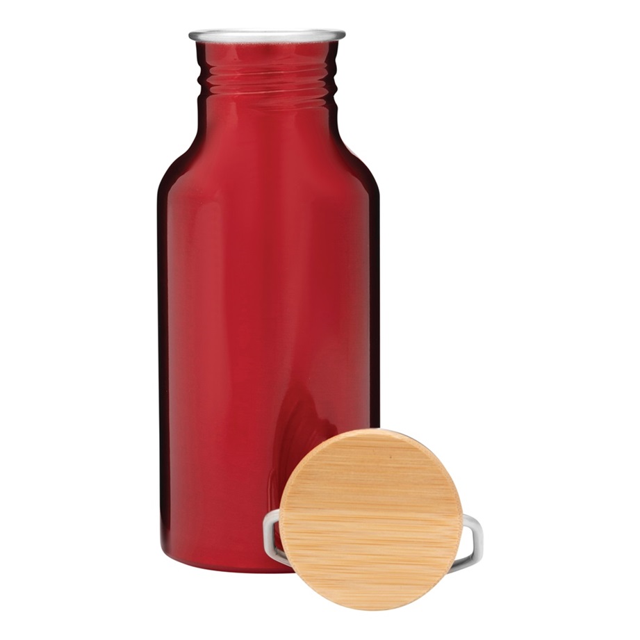 Aluminiowa butelka ECO TRANSIT z bambusową zakrętką i uchwytem do przenoszenia. Pojemność ok. 550 ml. Rozmiar: Ø7,3 x 19 cm. Materiał: Aluminium / Stal nierdzewna / Bambus.