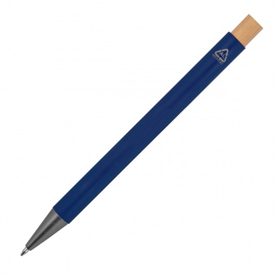 Metalowy długopis wykonany z aluminium z recyklingu, z korpusem o wysokiej trwałości. Bambusowy przycisk wprowadza naturalny element, a solidny metalowy klips ułatwia przypięcie do notesu czy kieszeni. Niebieski wkład zapewnia płynne i wygodne pisanie. Produkt sprawdzi się w biurze i na co dzień, łącząc wytrzymałość z ekologicznym podejściem.Waga: 0,017 kg. Opakowanie: woreczek foliowy. Kraj produkcji: CN. Producent/marka: M-Collection