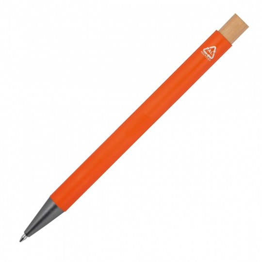 Metalowy długopis wykonany z aluminium z recyklingu, z korpusem o wysokiej trwałości. Bambusowy przycisk wprowadza naturalny element, a solidny metalowy klips ułatwia przypięcie do notesu czy kieszeni. Niebieski wkład zapewnia płynne i wygodne pisanie. Produkt sprawdzi się w biurze i na co dzień, łącząc wytrzymałość z ekologicznym podejściem.Waga: 0,017 kg. Opakowanie: woreczek foliowy. Kraj produkcji: CN. Producent/marka: M-Collection