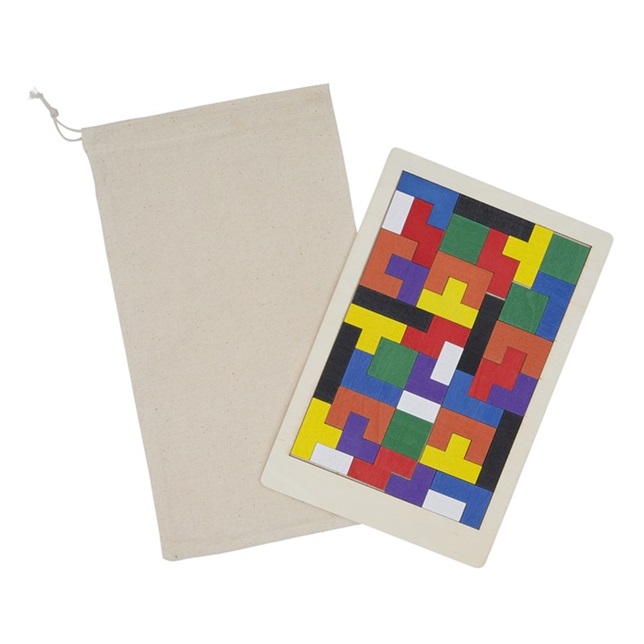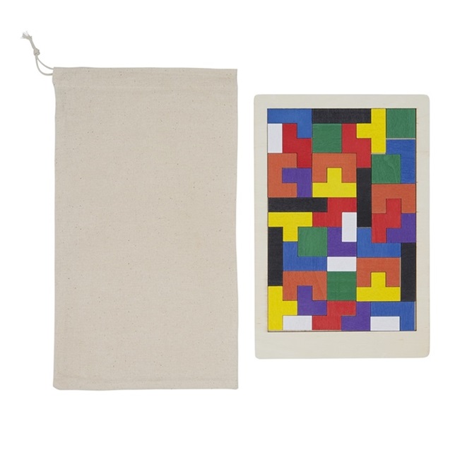 Drewniana układanka BRAIN TWISTER: 40 puzzli, schowane w przyjaznej dla środowiska bawełnianej torbie. Rozmiar: 26,5 x 17,8 x 0,6 cm. Materiał: Drewno / Bawełna.
