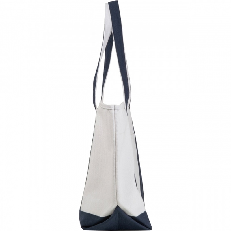 Solidna torba o gramaturze 730 g/m2, wykonana z bawełny pochodzącej z recyklingu z długimi kolorowymi uchwytami. Rozmiar: 58 x 20 x 34 cm. Materiał: bawełna z recyklingu.