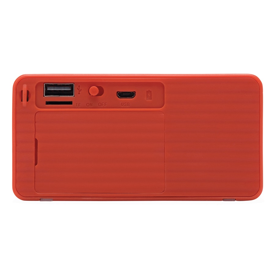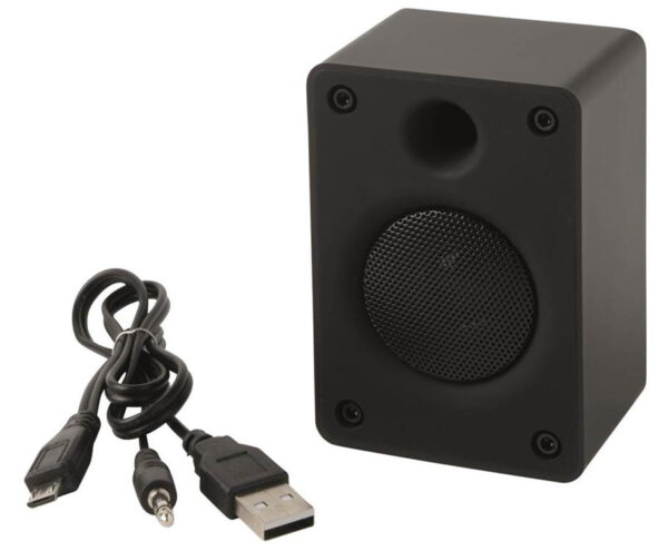Głośnik bezprzewodowy CUBOID w kolorowej gumowanej obudowie z antypoślizgowymi nóżkami od spodu. Moc 3 W, odpowiedni dla telefonów komórkowych, tabletów, odtwarzaczy MP3 itp. można podłączyć poprzez line-in, przyłącze 3,5 mm (długość kabla 50 cm), wbudowany slot na karty Micro SD, max. zasięg 10 m, wydajna bateria, pojemność ok. 300 mAh, kabel ładowania z gniazda USB micro USB (długość 50 cm) włącznie, czas działania ok. 2-3 godzin, czas ładowania około 1 godziny. Rozmiar: 10,8 x 3,6 x 5,4 cm. Materiał: Plastik.