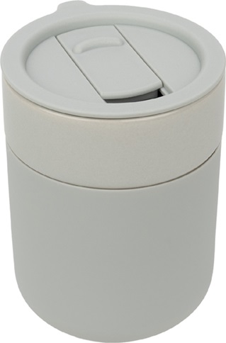 Kubek ceramiczny, o pojemności 340 ml, z silikonowym rękawem i zamykanym ustnikiem. Rozmiar: 10,8 x ⌀ 8,2 cm. Materiał: silikon