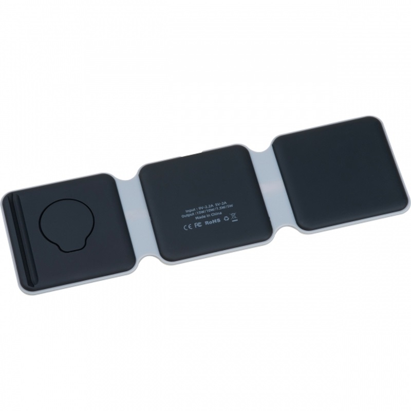 Praktyczna stacja indukcyjna, która jednocześnie naładuje 3 urządzenia – telefon, słuchawki i smart-watch. Rozmiar: 25 x 0,6 x 7,5 cm. Materiał: silikon.