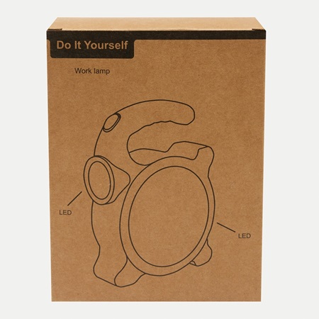 Lampa robocza DO IT YOURSELF z 2 poziomami jasności (światło robocze, pojedyncze światło), włącznikiem / wyłącznikiem, plastikową obudową z uchwytem, dwie nóżki gwarantują stabilność, nadruk możliwy na pokrywie od baterii. Rozmiar: 13,1 x 10 x 3,6 cm