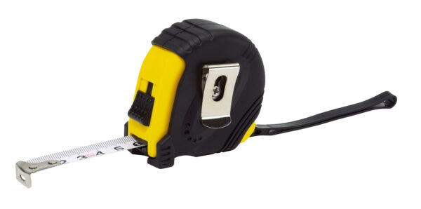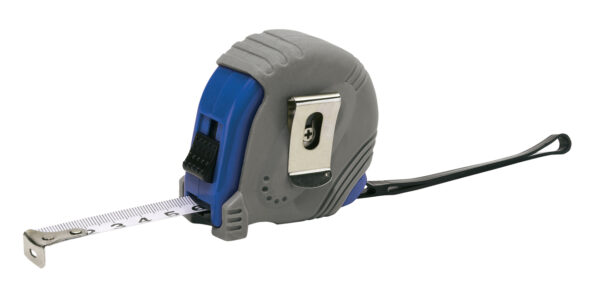 Taśma miernicza o długości 5m, z nylonowym sznurkiem i klipsem dzięki, któremu można zamocować ją na pasie narzędzi lub przypiąć do spodni. Rozmiar: 6 x 3,6 x 6 cm. Materiał: stal nierdzewna.
