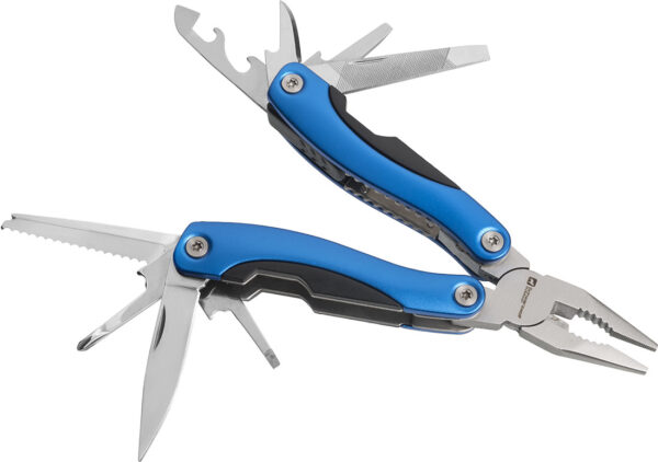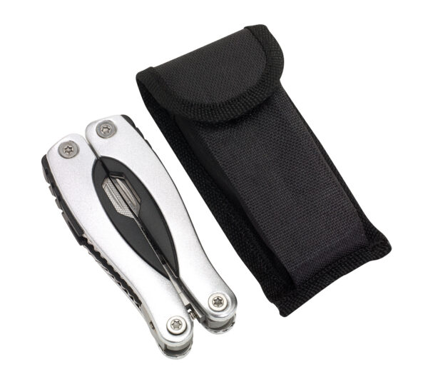 Wielofunkcyjne narzędzie z 6 funkcjami: nóż, piła, szczypce, karabińczyk, otwieracz do butelek i śrubokręt Phillips. Rozmiar: 3 x 1,8 x 8,5 cm. Materiał: stal nierdzewna