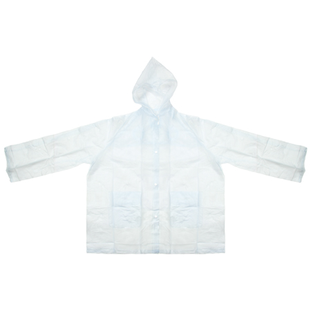 Przeźroczysty płaszcz przeciwdeszczowy zapinany na zatrzaski. Wykonany z tworzywa PVC, z kapturem i kieszeniami. Dostępny w rozmiarze XL. Rozmiar: XL