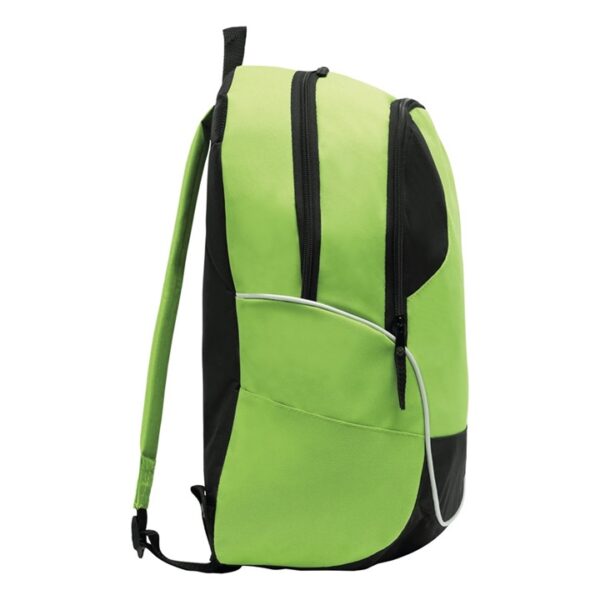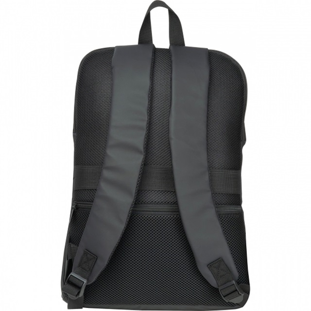 Plecak wykonany ze sztucznej skóry z dwoma ukośnymi kieszeniami, zapinanymi za zamek z przodu, uchwytem do przenoszenia, watowanymi szelkami i kieszonką antykradzieżową. Rozmiar: 30 x 11 x 42,5 cm. Materiał: poliuretan (PU).