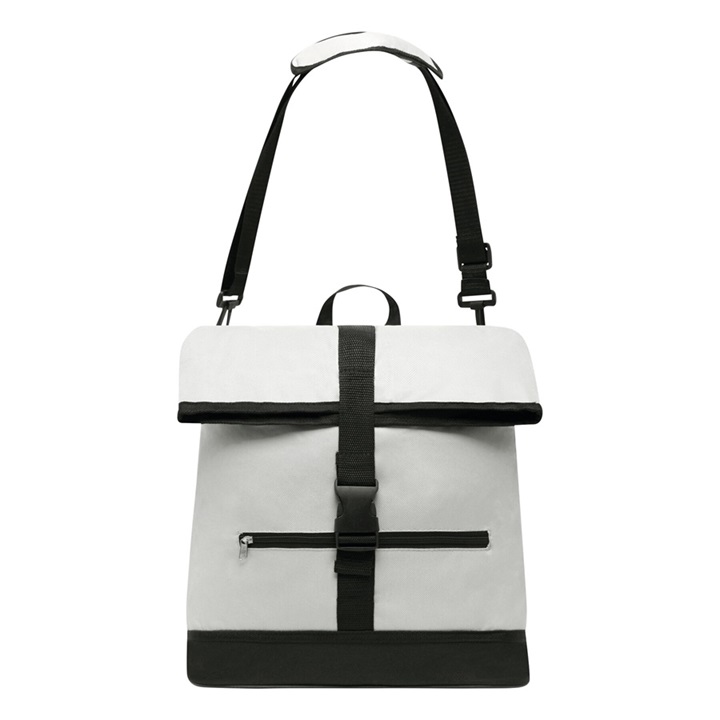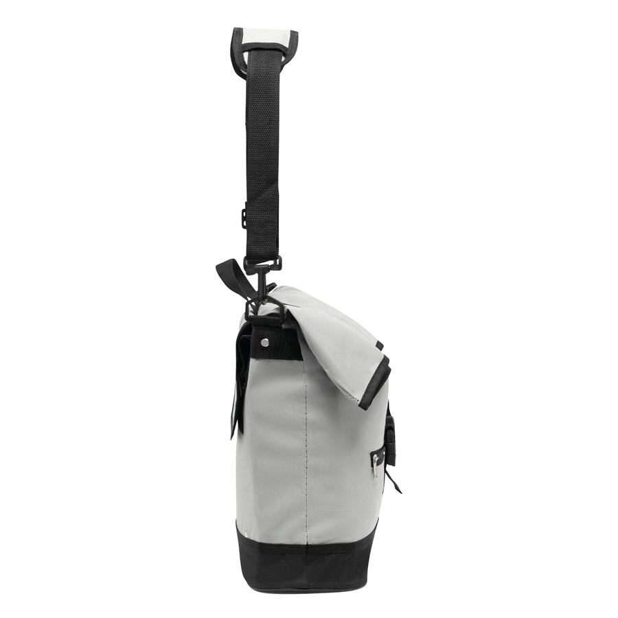 Torba rowerowa BIKE MATE z przestrzenną przegrodą główną z suwakiem i zatrzaskiem, przednią kieszenią z suwakiem, systemem montażu (przykrywanym), uchwytem do przenoszenia, regulowanym i wyjmowanym paskiem na ramię z podkładką. Rozmiar: ok. 34 x 14 x 38-50 cm
