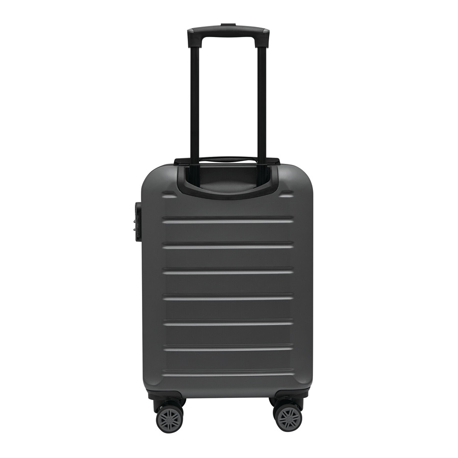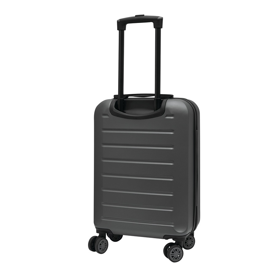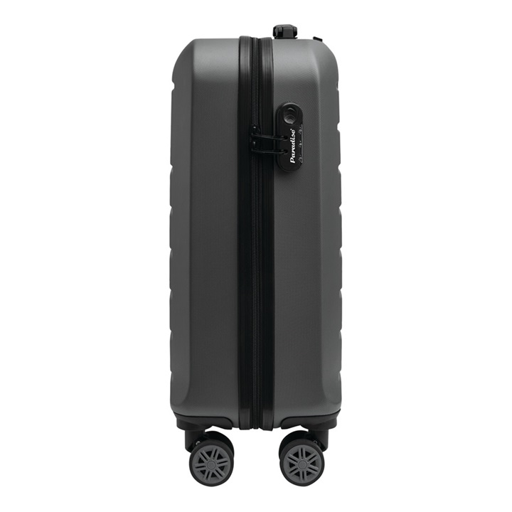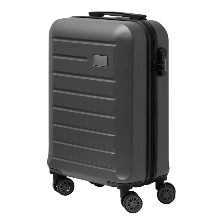 Walizka kabinowa na kółkach LUCCA z możliwością pakowania z obu stron. Wewnątrz znajdują się przegroda i kieszeń z siatki zapinane na zamek oraz elastyczny pasek do pakowania. Wyposażona w wysuwany uchwyt teleskopowy, uchwyt do podnoszenia i 4 podwójne obracające się o 360° kółka. Wymienna metalowa płytka oraz zamek szyfrowy zwiększają bezpieczeństwo bagażu. Rozmiar walizki odpowiedni jest dla tanich linii lotniczych. Produkt marki PARADISE. Rozmiar: ok. 56 x 33,5 x 20,5 cm. Materiał: ABS.