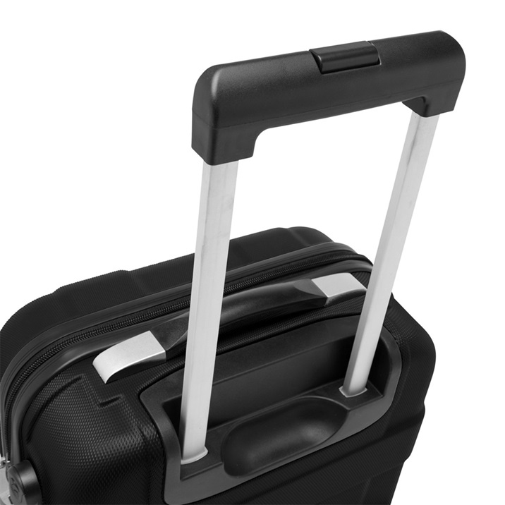 Walizka podróżna MONZA z możliwością pakowania z obu stron, z przegrodą na zamek i pasami do unieruchamiania zawartości, blokowane i chowane kółka, uchwyt do przenoszenia, zamek szyfrowy, 4 lekko jeżdżące koła, zdejmowana metalowa płytka, rozmiar odpowiedni dla tanich linii lotniczych. Rozmiar: ok. 55 x 35 x 20 cm