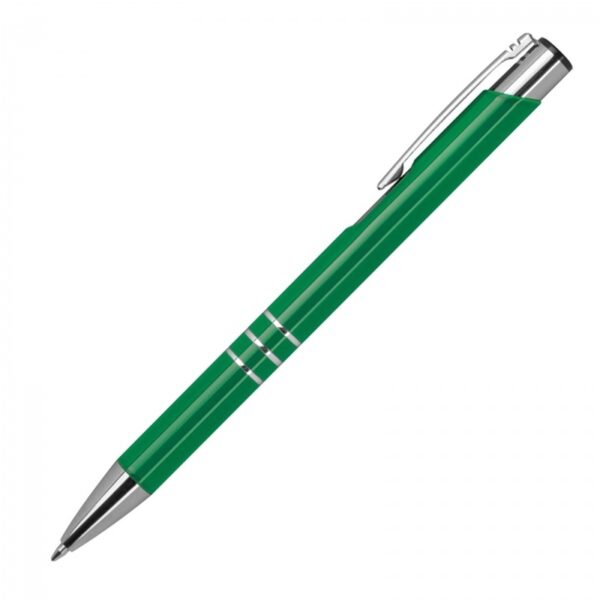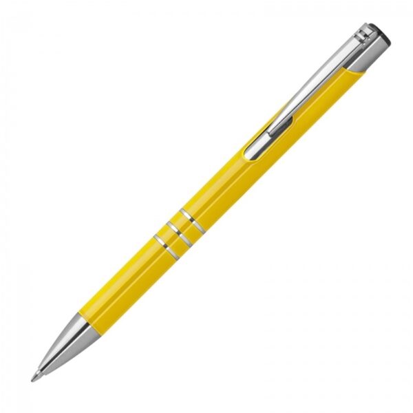 Klasyczny długopis metalowy z chromowanymi elementami i smukłym klipsem. Długopis wyposażony w duży niebieski wkład. Rozmiar: ø 1 x 14,2 cm. Materiał: aluminium