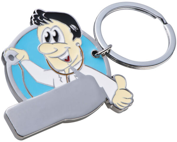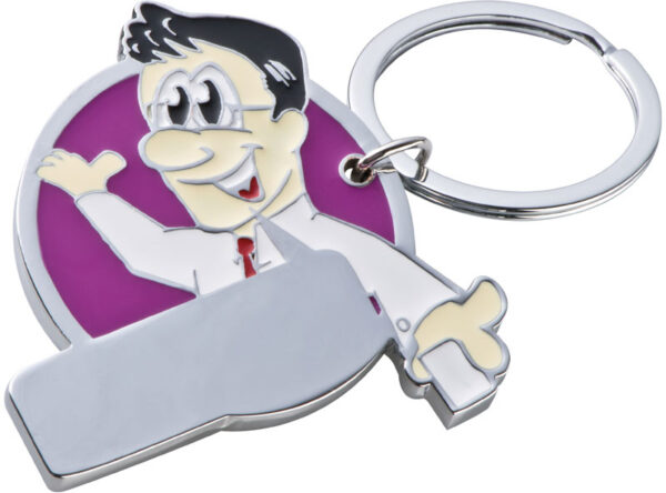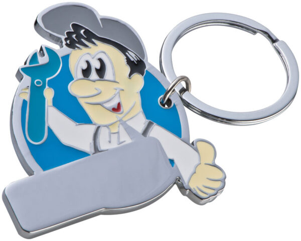 Brelok metalowy CrisMa z kolorowym, lakierowanym przodem. Logotyp można umieścić na metalowej blaszce. Rozmiar: 8,5 x 6 x 0,4